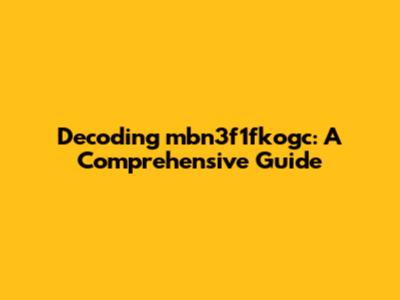 Decoding Mbn3f1fkogc: A Comprehensive Guide