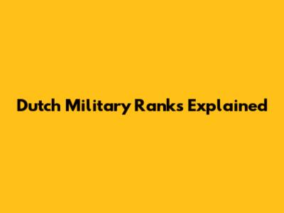 Dutch Military Ranks Explained