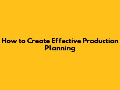 How To Create Effective Production Planning