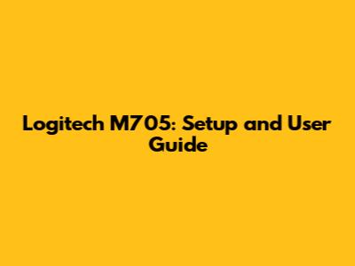 Logitech M705: Setup And User Guide