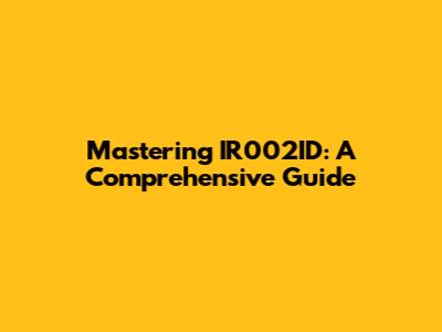 Mastering IR002ID: A Comprehensive Guide