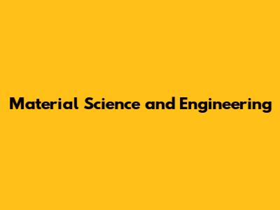 Material Science & Engineering: An Overview