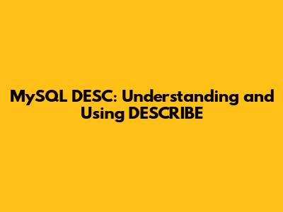 Hey guys! So, youâre diving into the world of MySQL, and youâve stumbled upon this DESC or DESCRIBE command. Whatâs the deal with it? Well, let me tell you, itâs a super handy tool in your MySQL arsenal. Essentially, DESCRIBE in MySQL is your go-to command when you need to get a quick overview of a table's structure. Think of it like this: you walk into a room and want to know what's inside without rummaging through every drawer. DESCRIBE gives you that bird's-eye view of your table. It tells you the names of the columns, what kind of data each column can hold (like text, numbers, dates), whether those columns can be empty (NULL), if theyâre part of a key (like a primary key or foreign key), and even provides a default value if one is set. Itâs not just about seeing the columns; itâs about understanding the blueprint of your data storage. This command is incredibly useful for anyone working with databases, from beginners trying to grasp table layouts to seasoned developers who need a quick reminder of a complex schema. Knowing the structure of your tables is fundamental for writing efficient queries, performing data manipulation, and ensuring the integrity of your database. Without DESCRIBE, youâd often have to dig through lengthy SQL scripts or documentation, which can be time-consuming and prone to errors. This command streamlines that process, making database management a whole lot smoother.