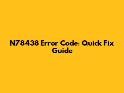 N78438 Error Code: Quick Fix Guide