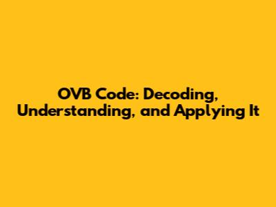 OVB Code: Decoding, Understanding, And Applying It