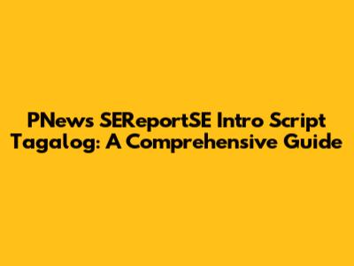 PNews SEReportSE Intro Script Tagalog: A Comprehensive Guide