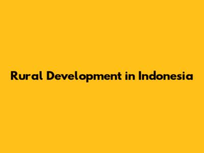 Rural Development In Indonesia