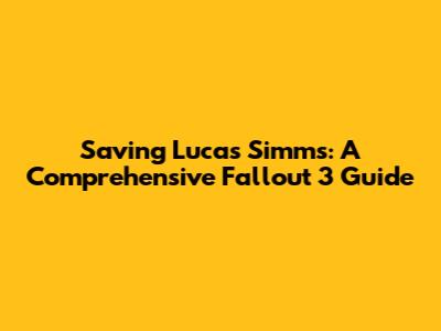 The moral weight of this decision is significant, and it's one of the things that makes Fallout 3 so memorable. Saving Lucas Simms often aligns with a more heroic playthrough, but itâs not always that simple. The game does a great job of making you consider the consequences of your actions, and thereâs no objectively ârightâ answer. However, if youâre aiming for a character who upholds justice and protects the innocent, saving Simms is a crucial step.