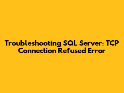 Having issues connecting to your SQL Server and seeing that dreaded “TCP Connection Refused” error? Don't worry, you're not alone! This error is a common headache for database administrators and developers alike. But fear not, we're going to dive deep into the causes and, more importantly, the solutions to get you back on track. This guide will walk you through the most common reasons why you might be encountering this error and provide step-by-step instructions on how to troubleshoot and resolve them. We'll cover everything from basic network connectivity issues to more complex SQL Server configuration problems. So, grab your favorite beverage, and let's get started!