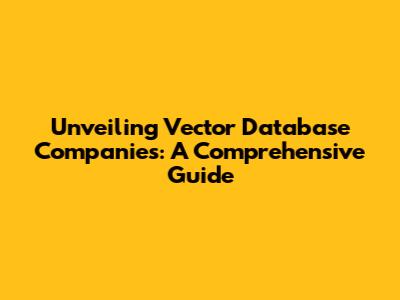 Unveiling Vector Database Companies: A Comprehensive Guide